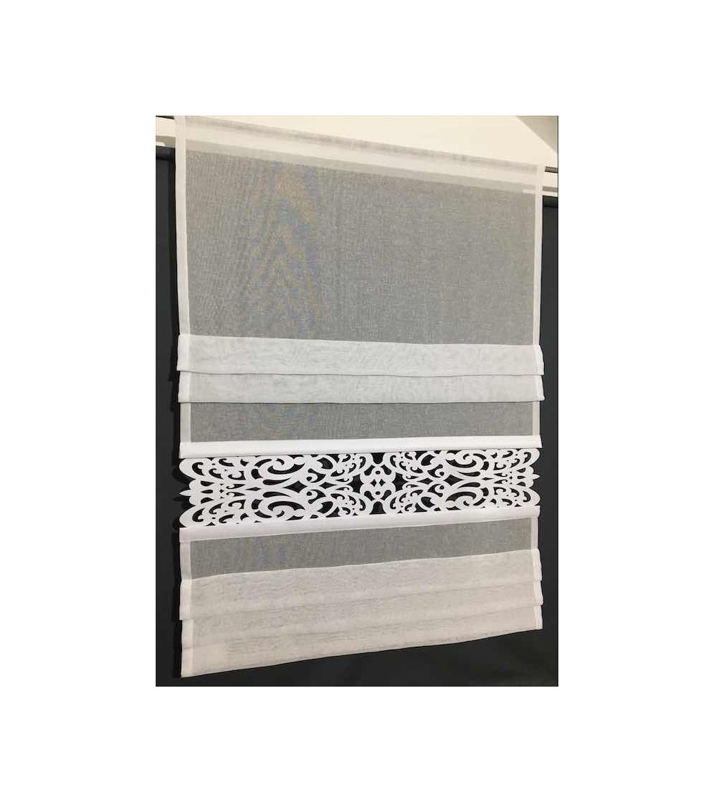 Firana panelowa wys. 140cm, szer. 105cm, zakładki przeszyte na stałe, ażur odpinany ( pranie ręczne), dół usztywniony listwą transparentną