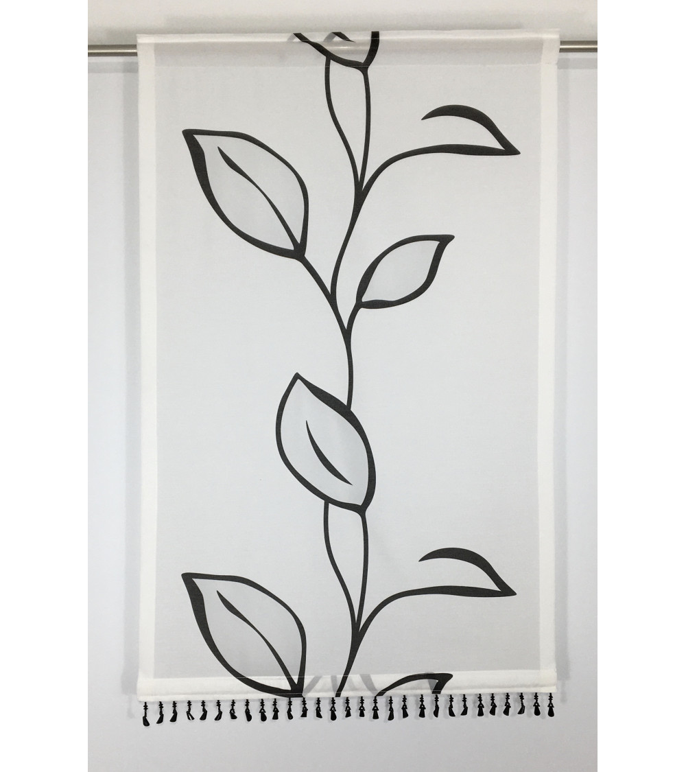 firana panel z czarnym wzorem, dół zakończony ozdobnymi kryształkami, wys. 100cm