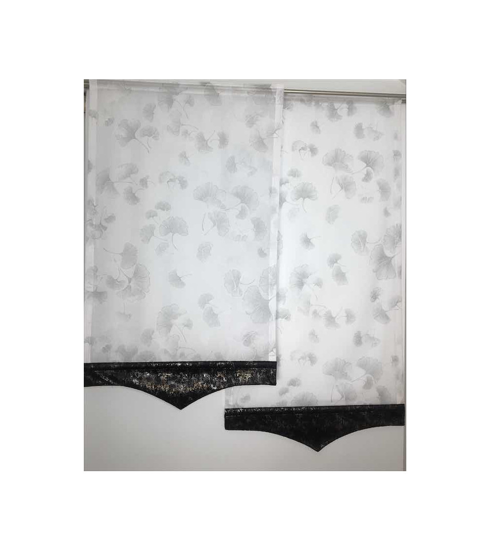 Firana panelowa w biało-szare dmuchawce z ozdobnym welurowym dołem szer. 80cm, wys. 110 i 130cm