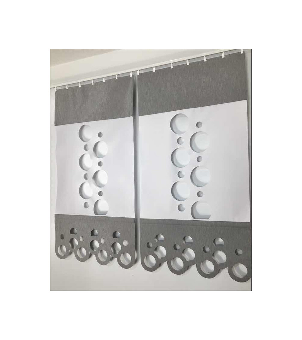 część biała z tkaniny plamoodpornej "Tama", gór i dół szary strukturalny usztywniony, szer. 60cm, wys. 120cm (1szt) wsuwana na tunel lub zapinana żabką, haczykiem, zalecane pranie ręczne, cena za 1szt.