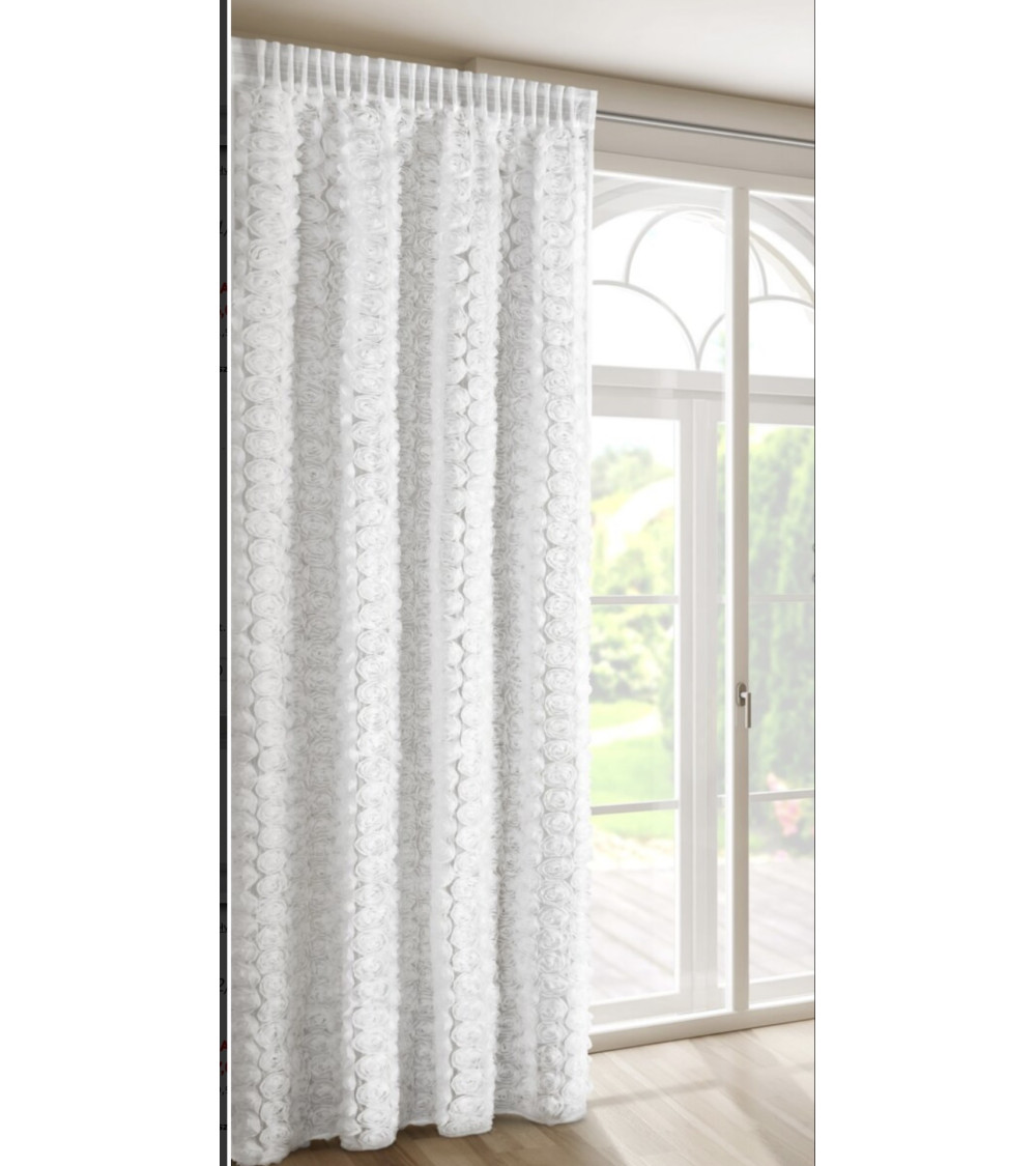 firana z siatki z różami po całości, kolor biały, z taśmą marszczącą, wysokość 250cm, szerokość 140cm, cena za 1szt, możliwość skrócenia na podany wymiar