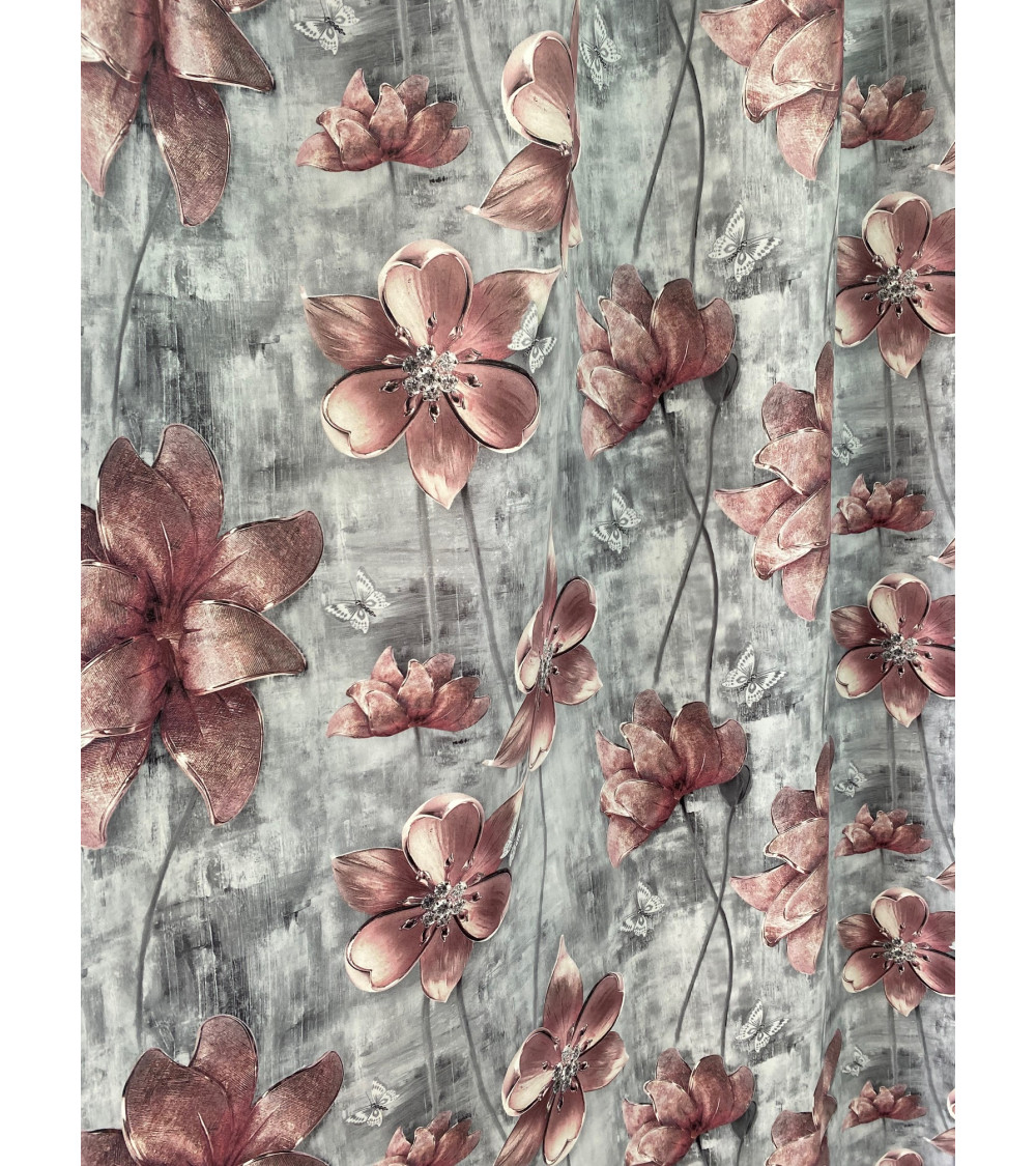 Tkanina zasłonowa, kwiat szaro-różowy 150cm