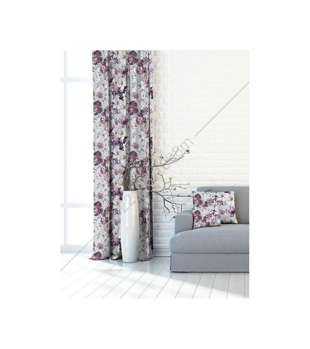 Tkanina zasłonowa kwiatowa, fioletowo-szara 150cm